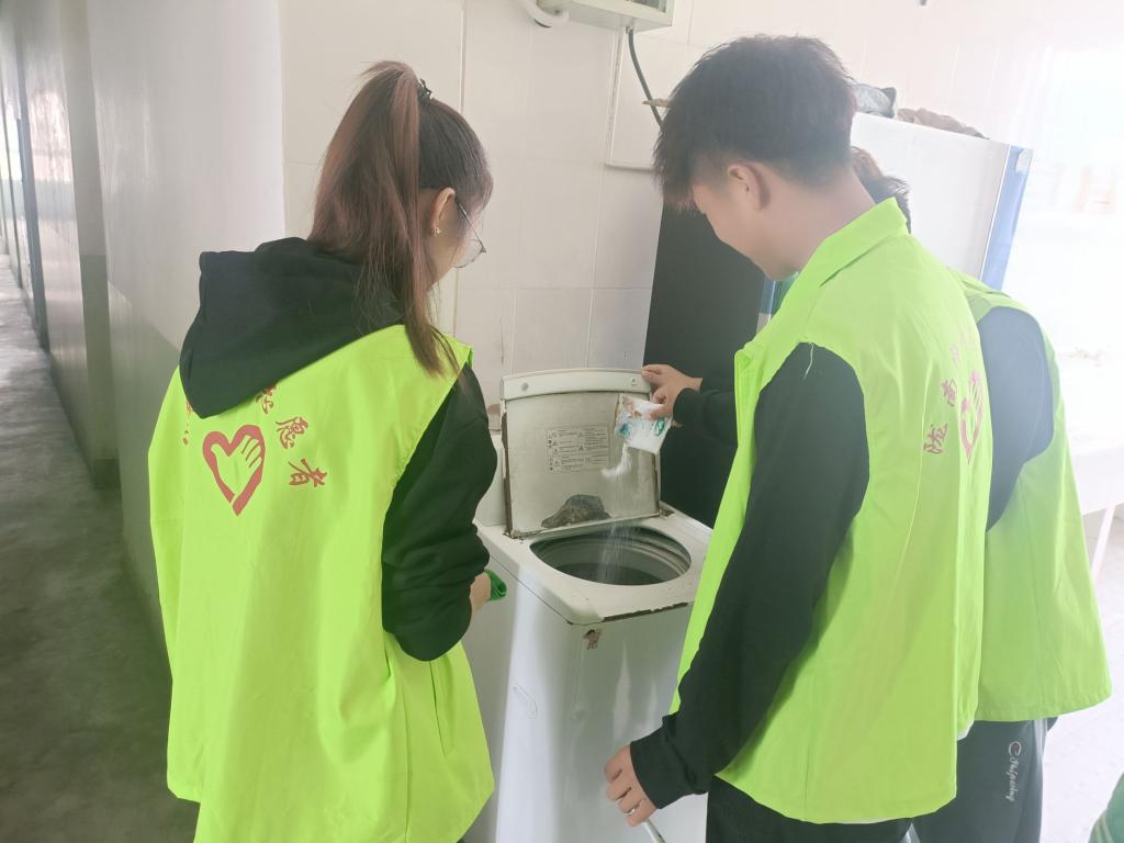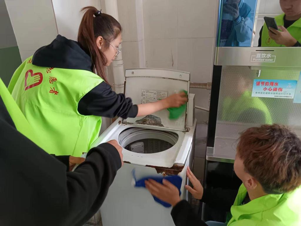 为了更好地维护同学们的切身利益,努力为同学们营造卫生、舒适的生活环境,9月27日,我校学生会牢记“全心全意为同学服务”的理念,开展了“我为同学做件事——清洗公寓洗衣机”志愿服务活动。