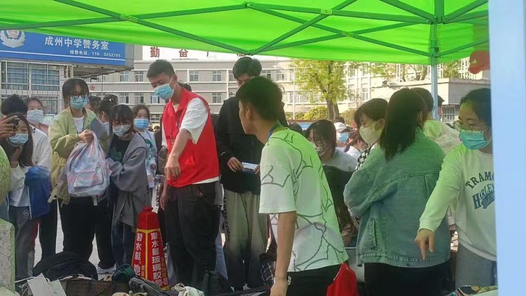 铅笔、橡皮擦、小刀等考试所用的文具,遮阳伞、凉凳、矿泉水、药品等防暑物品,都是志愿者们为考生免费提供的,保证其顺利参加考试。同时,校学生会还设立了物品寄存,让考生们专心考试。