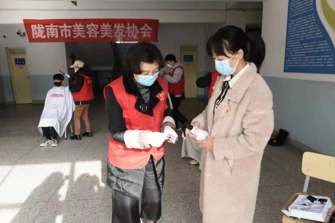 志愿者理发师莫娇,是陇南市美容美发协会的会长。活动结束的时候她才发现自己已经站立不住,笑着称今天比“二月二”那天工作量还大,但是理发过程中有同学说“谢谢”的时候,她总是摆摆手:“我们也不会别的,能在这特殊的时刻出的贡献自己力量,大家都很愿意!不说感谢的话,孩子们只要能平平安安、健健康康,你们的老师高兴,我们也高兴,学校和社会也放心!”