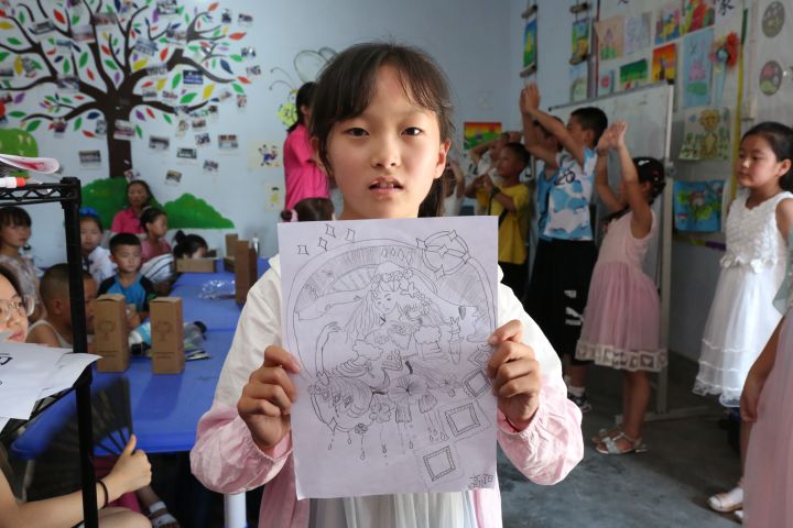 图为小朋友完成的绘画作品。中国青年网通讯员 杜金波 摄