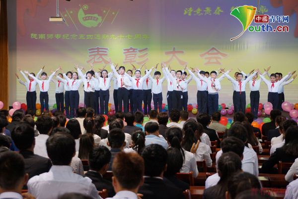 5月4日,在纪念“五四”运动97周年之际,陇南师专举行纪念“五四”运动97周年表彰大会暨“诗意青春 梦想起航”中华诗文经典诵读比赛活动。学校党委书记司跃宁,校长刘先春,副校长孔庆庭、任永峰、王胜青,党委委员王录全、张勇等学校领导出席活动,组织部、宣传部、办公室、学生处、教务处等部门负责人及全校师生代表共计500余人参加活动。