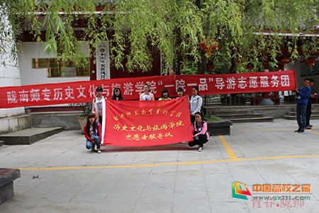 “五.一”假期来临之际,陇南师范高等专科学校团委“一院一品”活动---历史文化与旅游学院导游志愿服务活动在成县西狭颂和杜甫草堂风景区开展。历史文化与旅游学院20余名志愿者分为三个志愿服务小分队,分别在成县西狭颂东口、西口与杜甫草堂三个地点进行了导游志愿服务活动,活动从4月30日开始至5月2日结束。