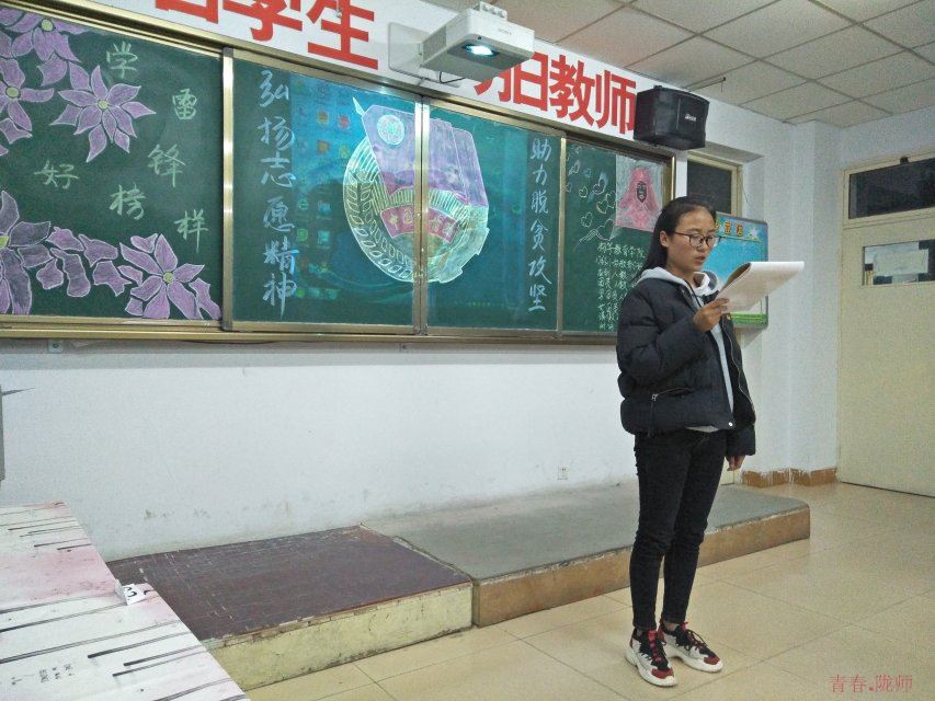 全体学生佩戴团徽,整理着装,伴随着团歌的唱响,团日活动正式开始。各班团支书认真开展活动,同学们积极配合,各自讲述着对“雷锋精神”的认识和关于雷锋的一些光荣事迹。