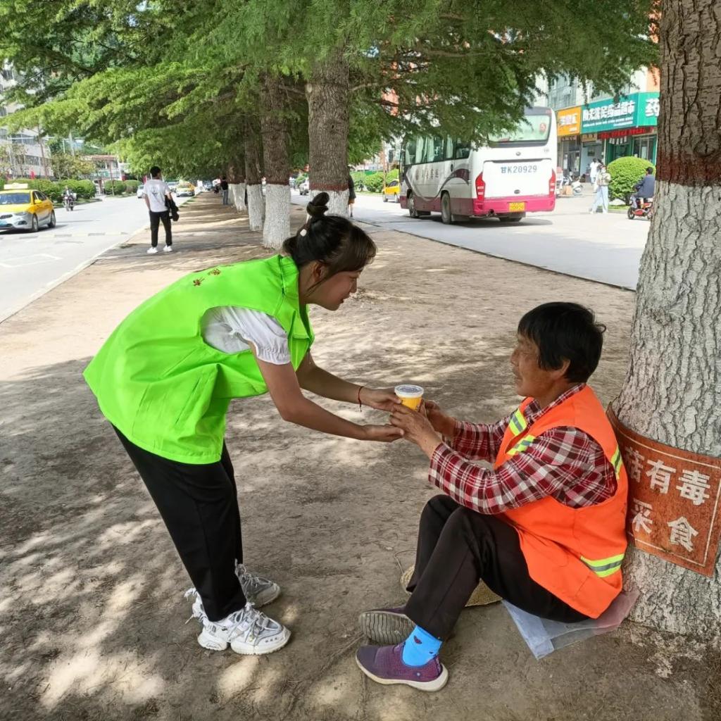 接过绿豆汤的环卫工人、保安、外卖员和出租车司机们的脸上无不露出欢笑,他们表示:“能喝到分发的绿豆汤,实在是太幸福了。”此外,他们还向分发绿豆汤的志愿者们表达了诚挚的感谢。