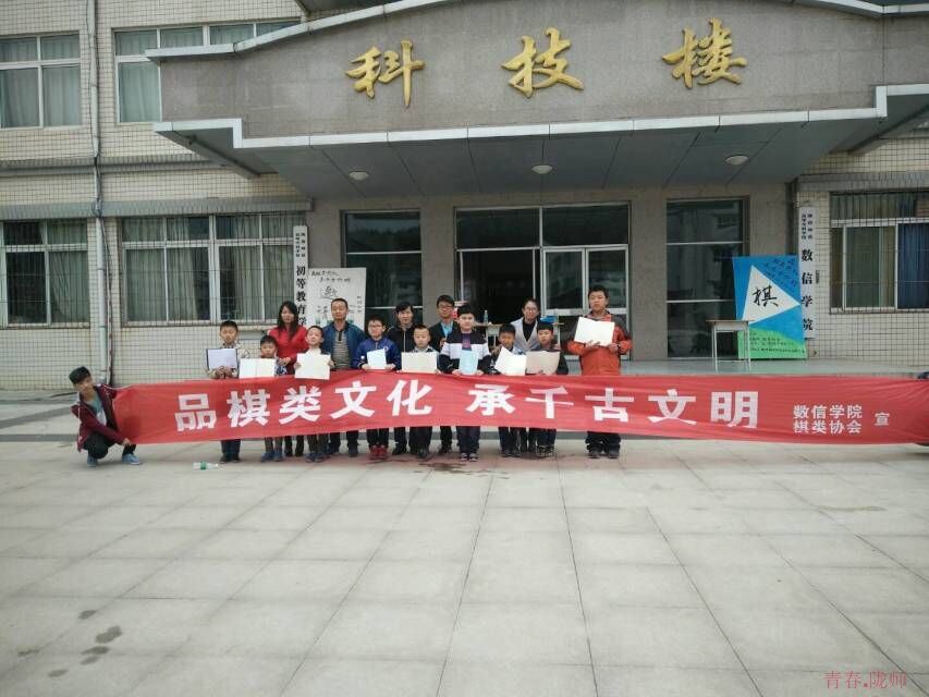 棋类协会“品棋类文化,承千年文明”棋类比赛,于2017年4月15日在科技楼前成功举行,参加人员有:成县青少年活动中心科技创新教练王老师及其学生,数信学院副院长邱晓鹏老师、数信学院学生会主席刘海同学及社团部代表张玉贞同学,社团指导老师张金站老师和各社团社长及社联干部,棋类协会全体成员及来自各个学院的参赛选手共200余人。