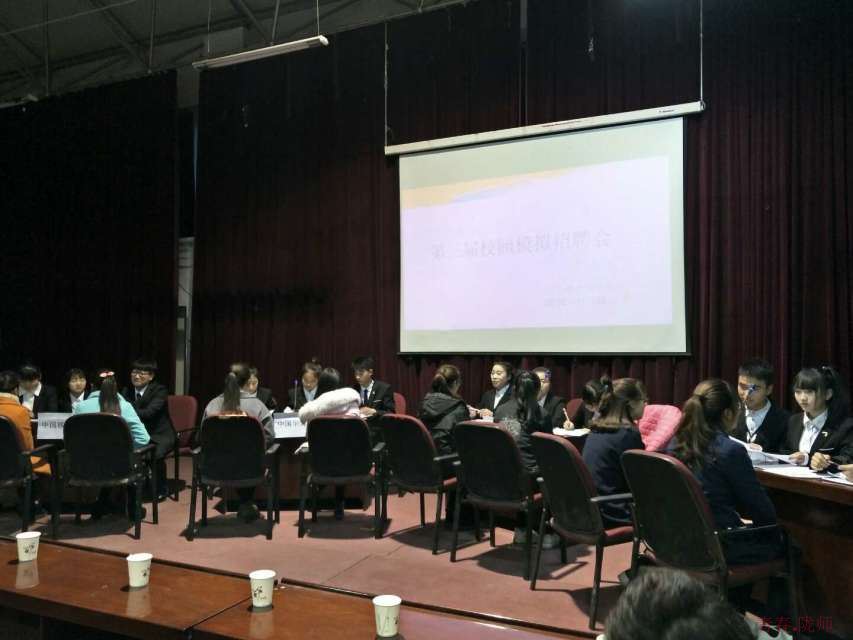 11月28日下午,由我校大学生就业创业社团承办的“第三届校园模拟招聘会”在图书馆五楼会议室隆重举行。随着全国高校的扩招以及近几年中国经济地位在全球的快速崛起,高校大学毕业生的就业形势日趋严峻,就业竞争压力日益增大。为了提高大学生未来求职道路上竞争的意识,为关心和帮助大学生大胆创业。我校大学生就业创业社团承办的“第三届校园模拟招聘会”在图书馆五楼会议室举行了本次活动,活动得到了学校领导的大力支持和关心,各社团代表参加了本次活动,活动以模拟大学生毕业面试的形式进行。活动通过专业知识作指导,已突破常理思维,大胆设想激发同学们的无限潜能,为将来就业奠定基础,改变同学们的传统就业理念,为同学们就业求职指引方向,实现人生目标。
